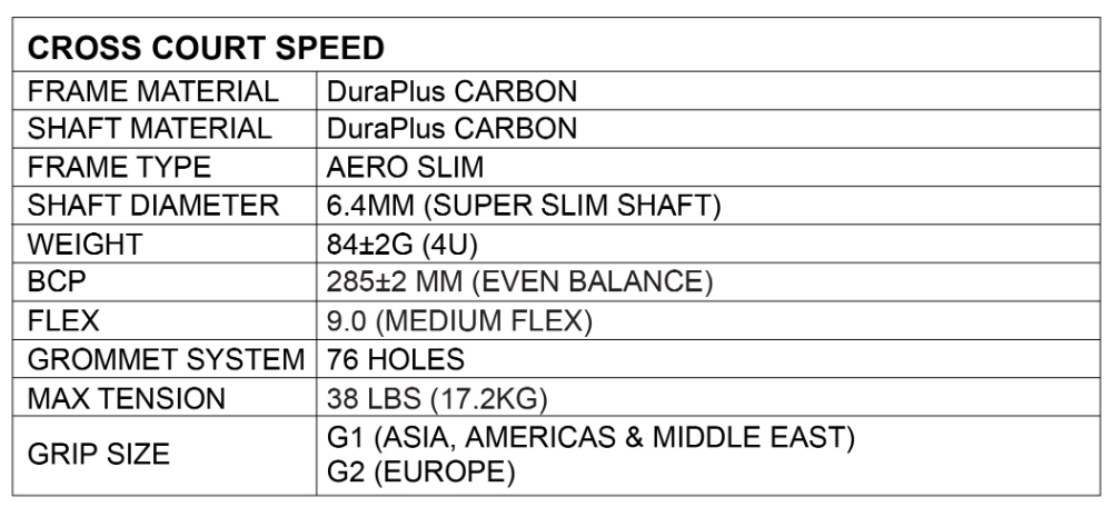 Cross Court Speed quantity